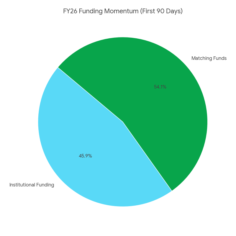 As we look ahead, we are building on a foundation established by early institutional partners who believed in this work before it was proven—providing the catalytic support that made our growth possible. That momentum continues today, with $1.7M in confirmed institutional funding secured within the first 90 days of FY26. Alongside this, we have secured $2M in matching funds to launch a major campaign focused on engaging high-net-worth individuals—expanding and diversifying our funding base for long-term sustainability.